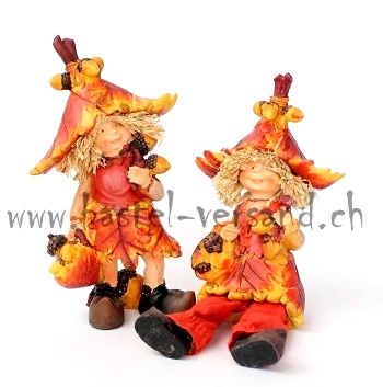 Polyresin Herbstkinder, sitzende mit Stoffbeinen ca. 7,5 - 18cm hoch