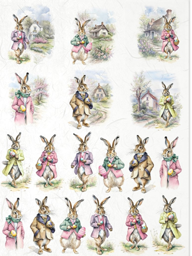 Reis- Decoupagepapier Hasen A4