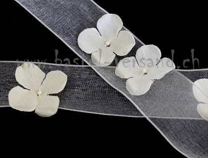 Dekoband 3,8cm ivory mit aufgesetzen Blumen