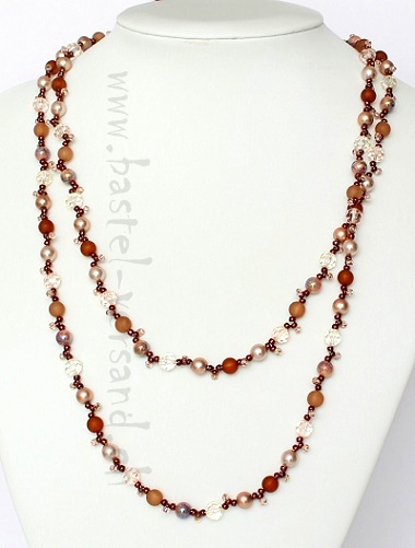 ca. 240cm lang kann offen oder mit einem Kettensammler als Mehrfachkette getragen werden Glas- und Wachsperlen (ohne Kettensammler)