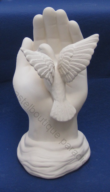 Rohkeramik Taube in Hand
